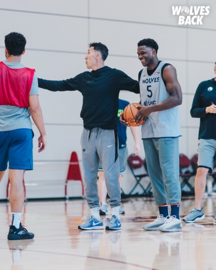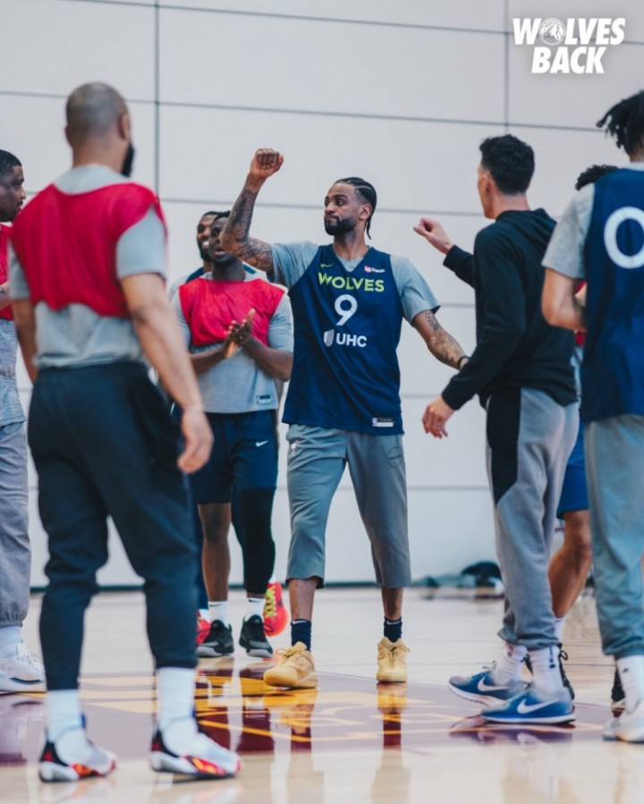 3-1领先! 多人面带笑容! 森林狼晒训练照: 准备好明天的G5了